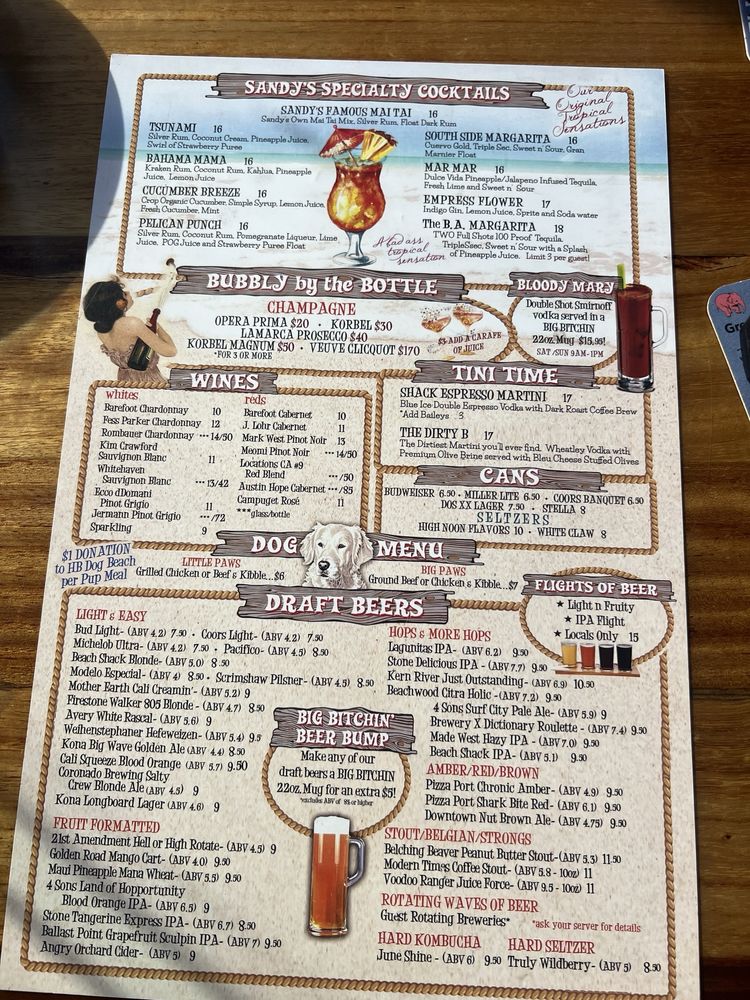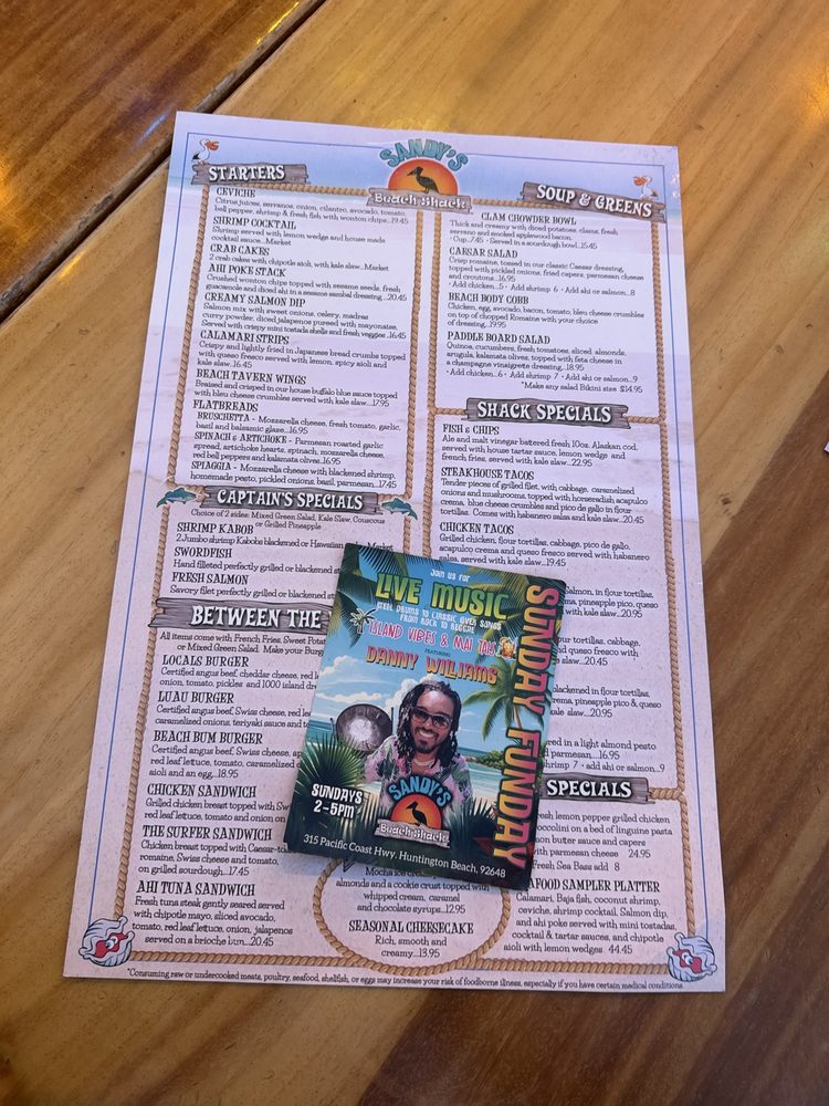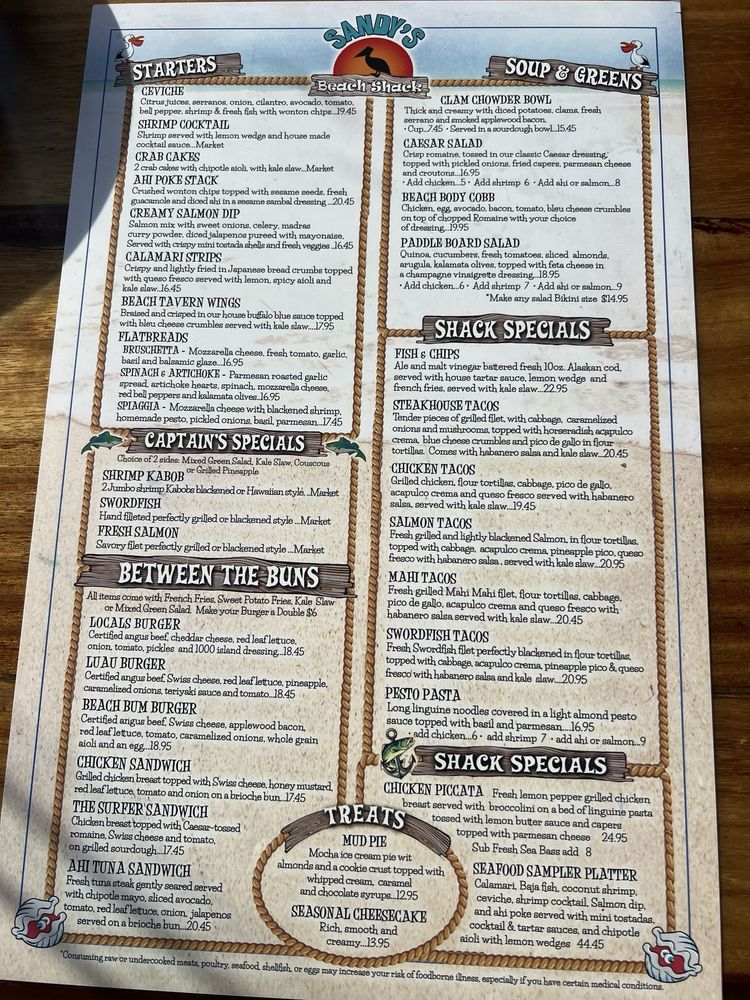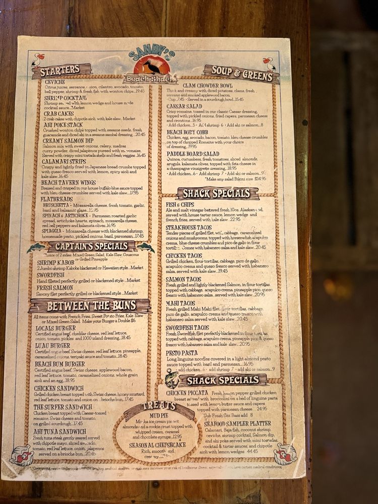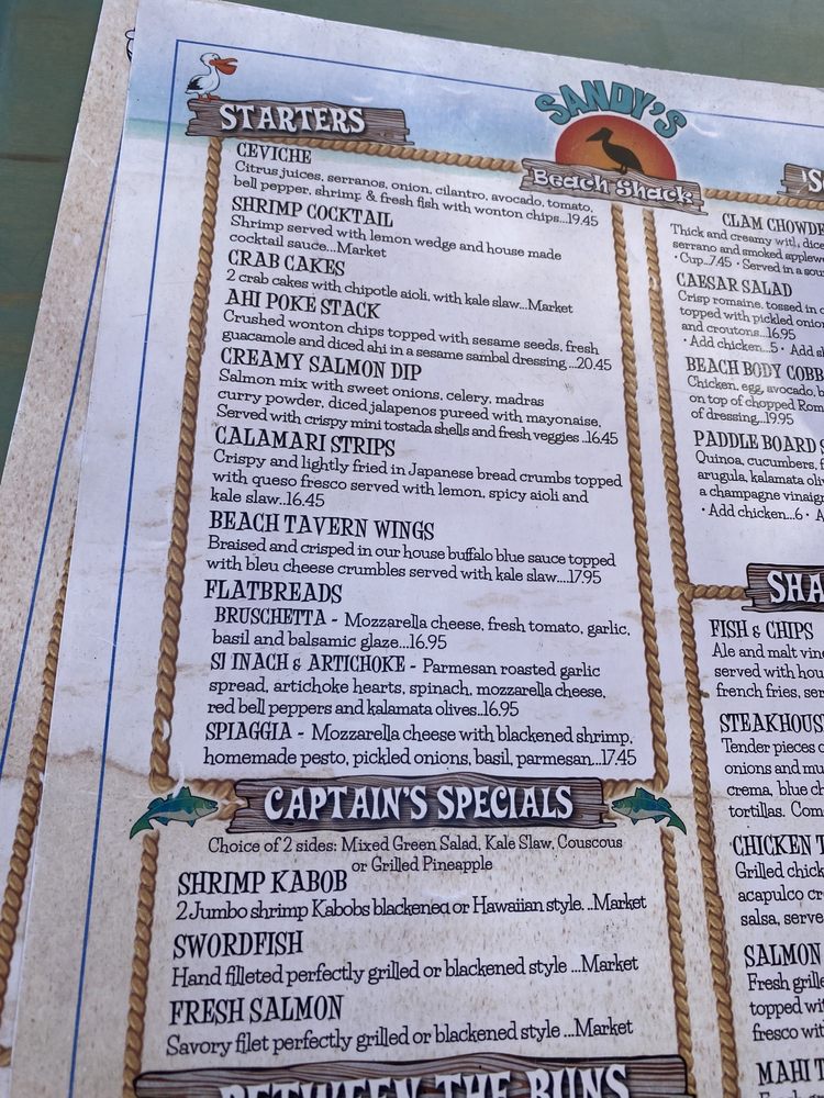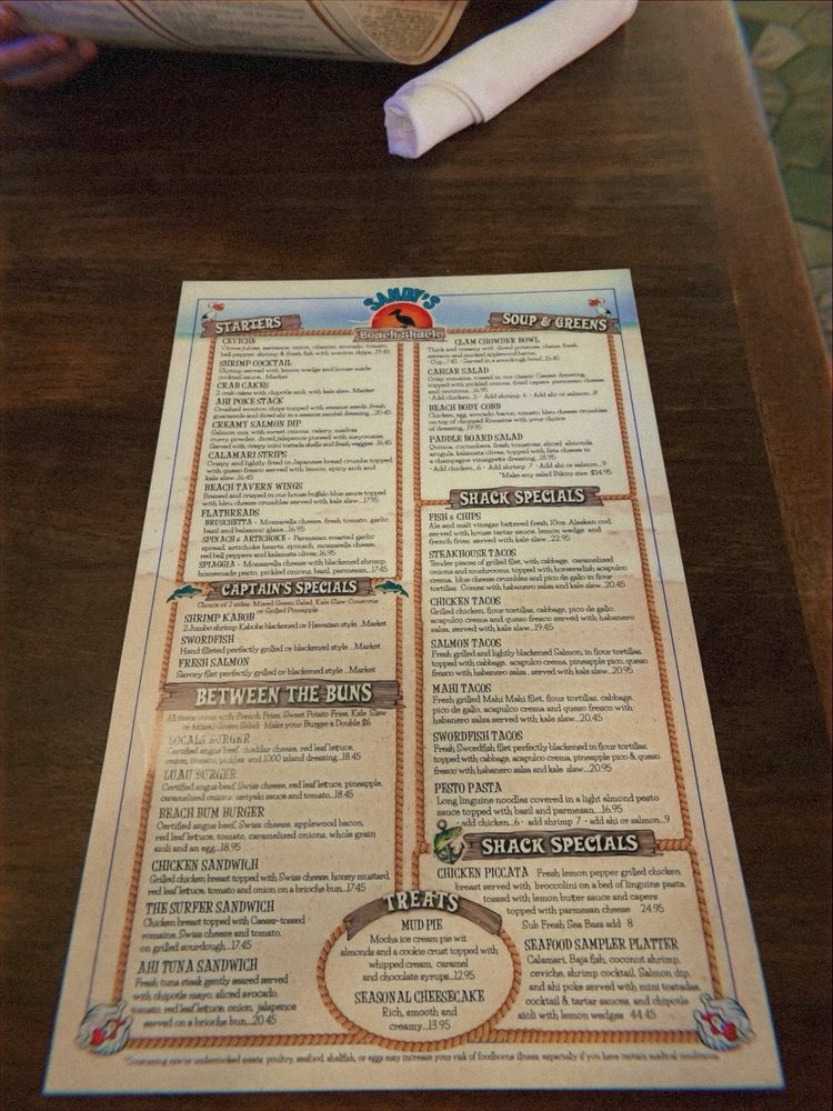 Sandy’s Beach Shack Menu (Update 2025)