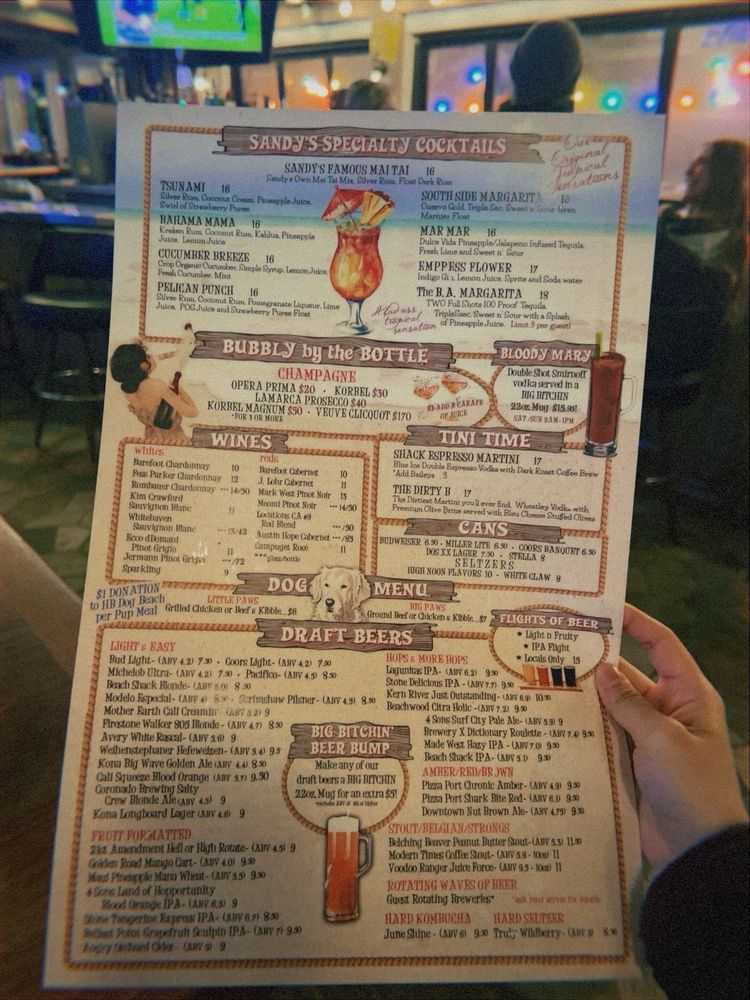 Introducing Sandy’s Beach Shack, a coastal cocktail bar and diner located in Huntington Beach, CA, known for its excellent food, service, and ambiance. The menu offers a variety of options for breakfast, brunch, lunch, dinner, and dessert, with limited vegetarian choices available. With takeout, delivery, and catering services, Sandy’s Beach Shack is accessible to all, including those with disabilities.